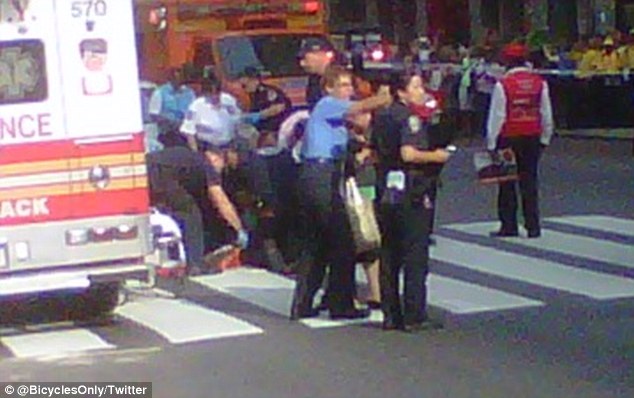 - NYPD swooped on scene and shot gunman dead with single shot.